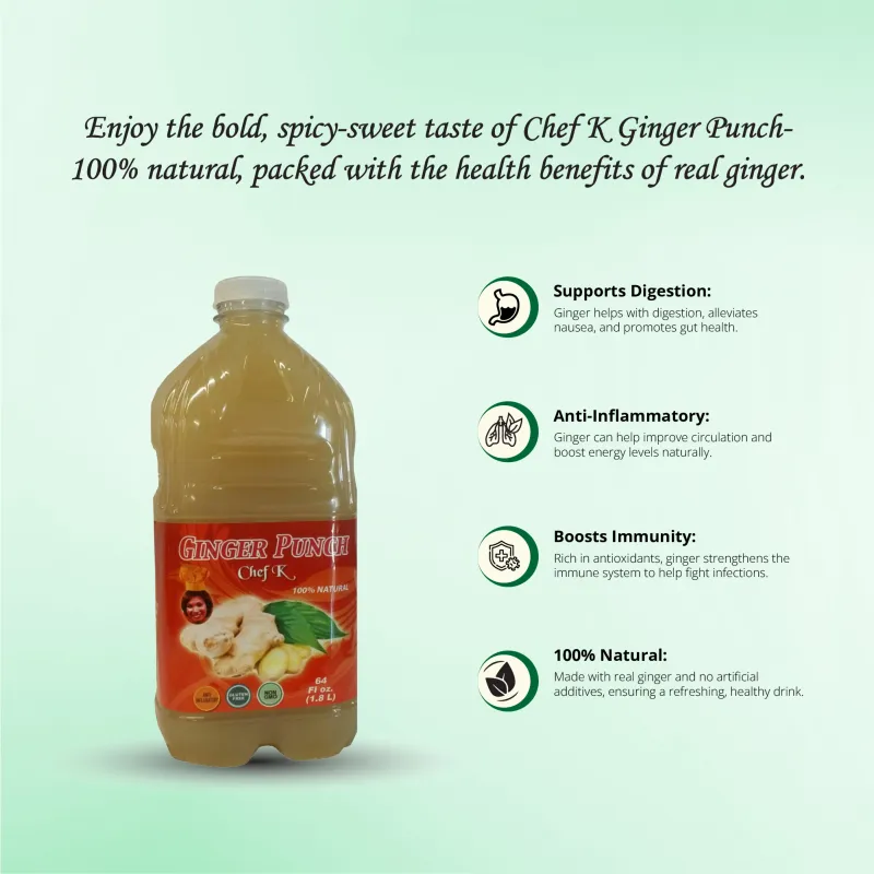 Chef K, Inc. | Ginger Punch – Classic Ginger Drink for Family Gatherings | 64 oz